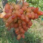 Красивые большие и хрустящие спелые плоды нежнейшего янтарного или розоватого оттенка, свисающие на огромных гроздьях, принадлежат вкусному и сочному винограду сорта Диксон.
